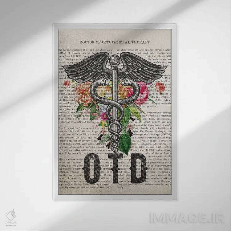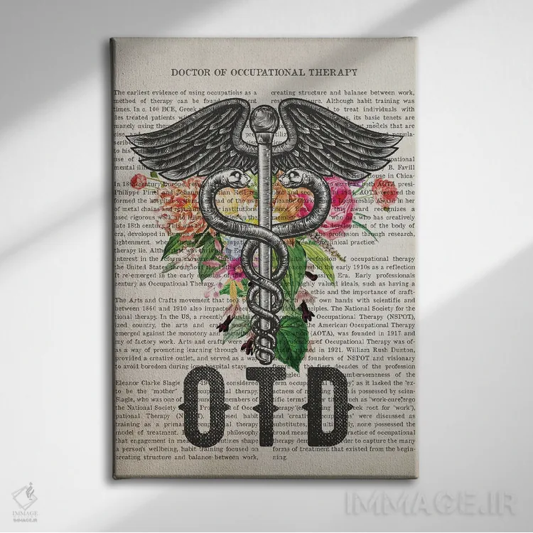 تابلو دکوراتیو دکترای کاردرمانی با گل ها اثر پیکسل کهنه