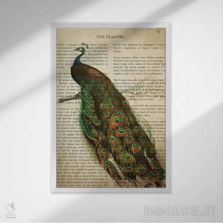 تابلو چاپ وینتیج طاووس اثر پیکسل کهنه (استودیو/نام هنری) - نمای پرسپکتیو محصول