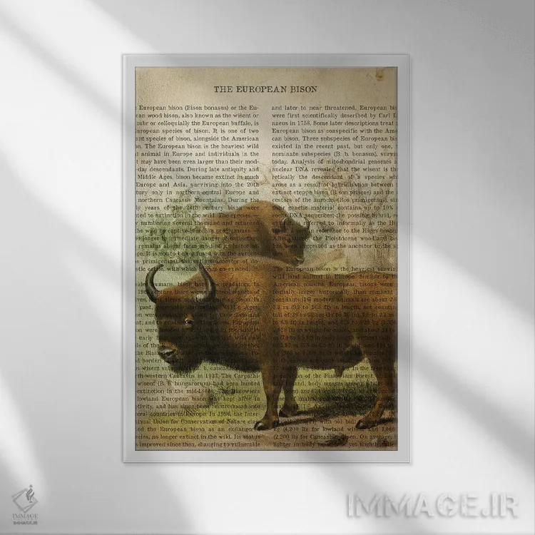 برای دکورهای صمیمی، «چاپ وینتیج گاومیش اروپایی» اثرِ «پیکسل کهنه (استودیو/نام هنری)» مثل یک امضای بامزه اما متین عمل میکند؛ برای راهروها و ورودیهای گرم انتخابی خوشسلیقه است. در کنار گیاهان و نور طبیعی، جذابتر هم میشود.