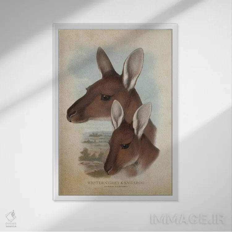 تابلو کانگوروی خاکستری غربی (چاپ وینتیج) اثر پیکسل کهنه (استودیو/نام هنری)