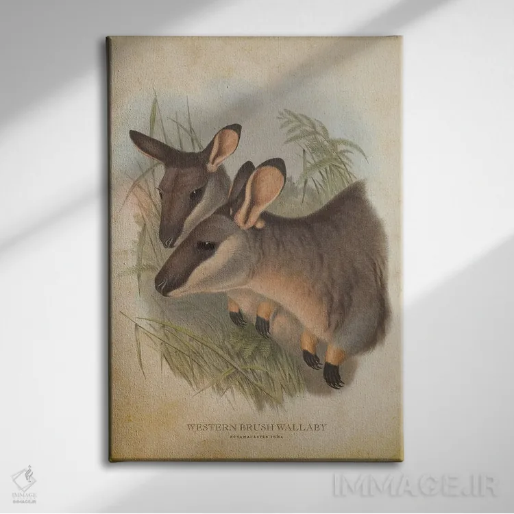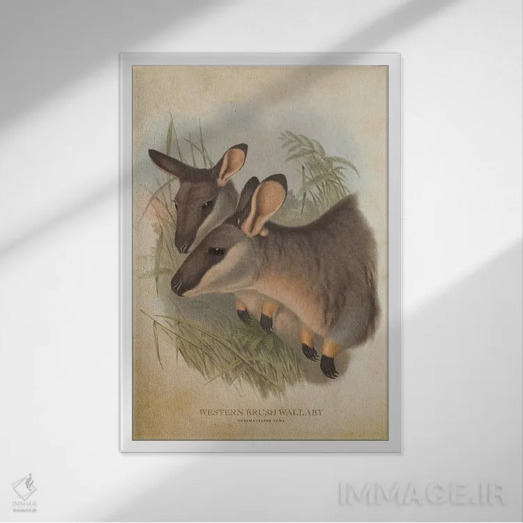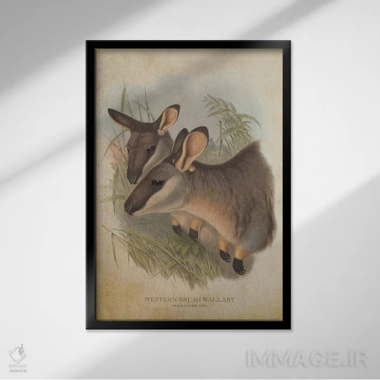 اگر میخواهید دیوار کمی سرزندگیِ محترمانه داشته باشد، «والابی بیشهای غربی (چاپ وینتیج)» اثرِ «پیکسل کهنه (استودیو/نام هنری)» به دیوار، انرژیِ نرم و زنده میدهد، برای کافههای کوچک و صمیمی گزینهٔ مناسبیست. اگر دنبال اثر دوستداشتنیِ «بیغلو» هستید، این یکی دقیق مینشیند.