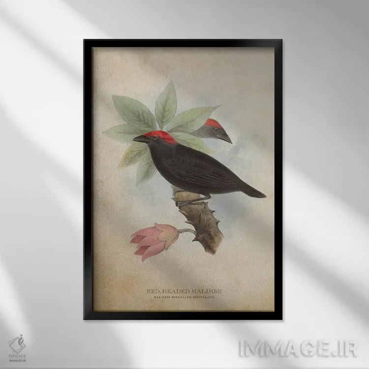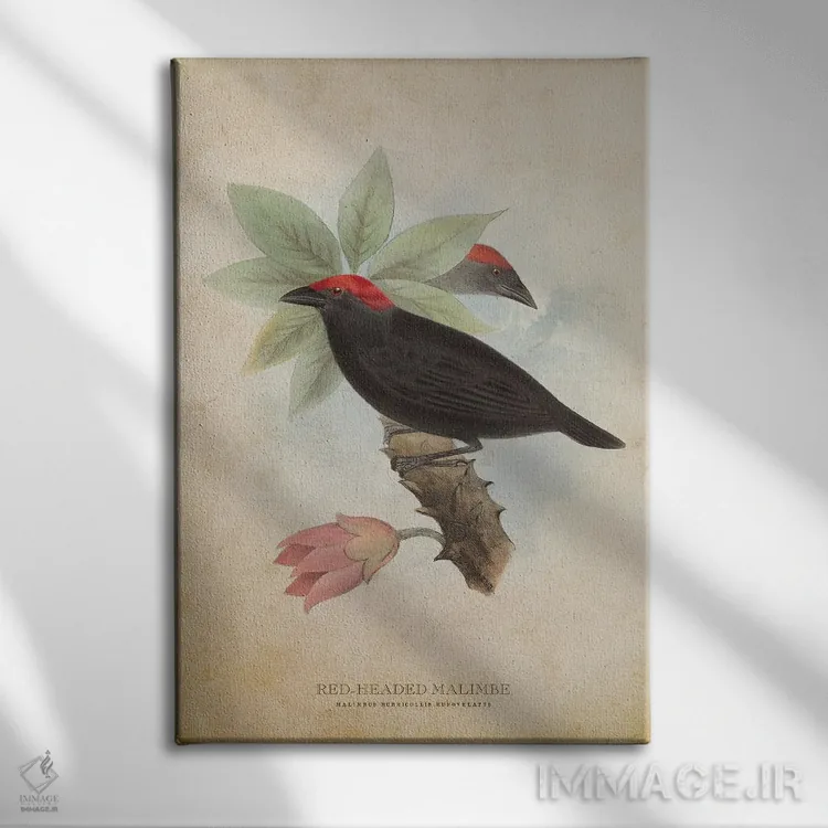 «مالیمبه سرقرمز (وینتیج)» اثرِ «پیکسل کهنه (استودیو/نام هنری)» با موضوعِ این اثر، یک انتخاب دوستداشتنی برای افزودن انرژی و صمیمیت به فضاست.