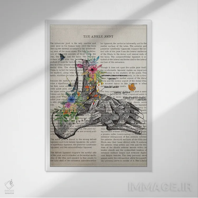 تابلو دکوراتیو مفصل مچ پا آناتومی گل اثر پیکسل کهنه