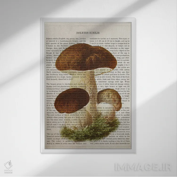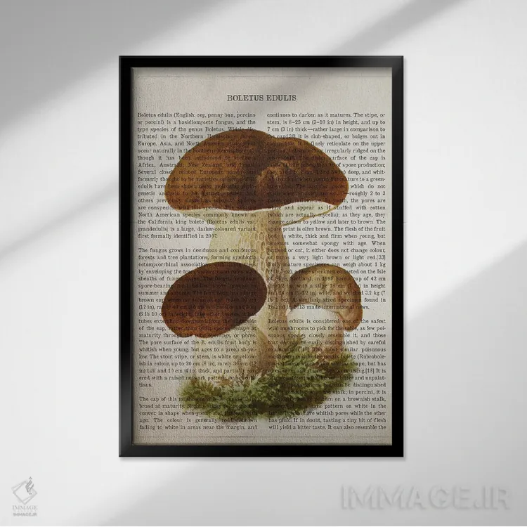 اگر چیدمانتان مینیمال است و فقط یک نقطهی رنگ میخواهید، «قارچ بولتوس ادولیس (قارچ شاهبلوطی خوراکی)» اثرِ «پیکسل کهنه (استودیو/نام هنری)» با تم این اثر گزینهی خوشسلیقهای است.