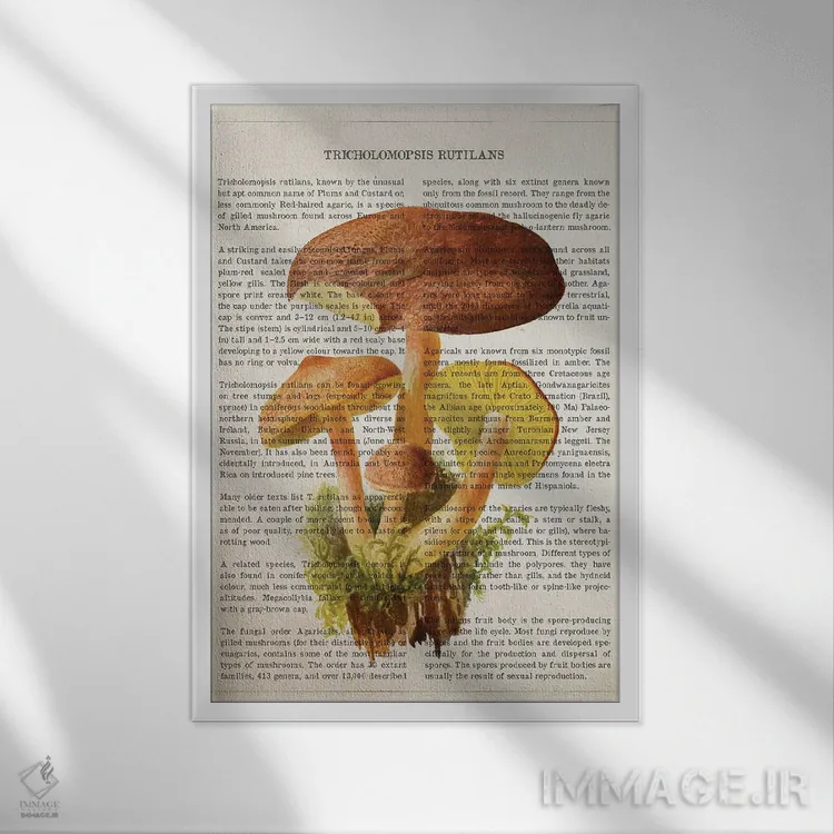 تابلو قارچ تریکولوموپسیس روتیلانس اثر پیکسل کهنه (استودیو/نام هنری) - نمای قاب‌دار سفید