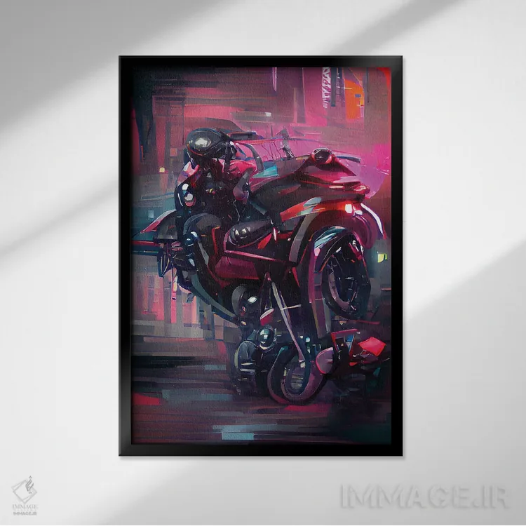 تابلو دکوراتیو موتورسوار سایبرپانک اثر آلساندرو دلا توره