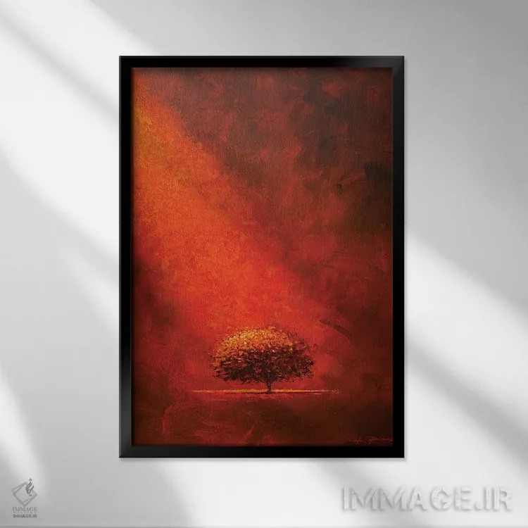 براساس پالت گرم اثر، قاب تیک گرم (چوبی) پیشنهاد اول است و مشکی مات (فریم متوسط) مکمل. برای سفارشهای پروژهای با ابعاد و قابهای اختصاصی با ایماژ در تماس باشید.