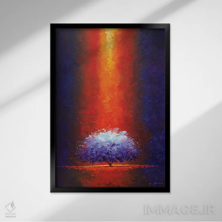 براساس پالت ترکیبی اثر، قاب تیک گرم (چوبی) پیشنهاد اول است و مشکی مات (فریم متوسط) مکمل. برای سفارشهای پروژهای با ابعاد و قابهای اختصاصی با ایماژ در تماس باشید.