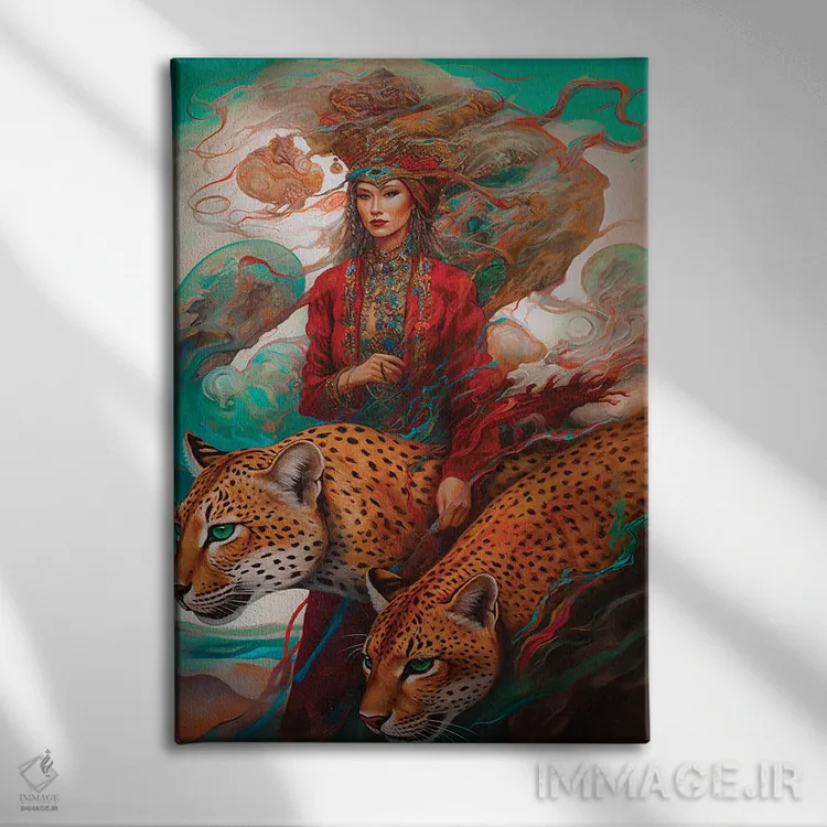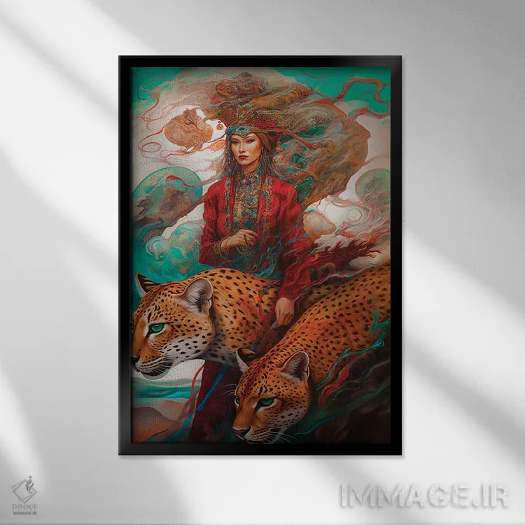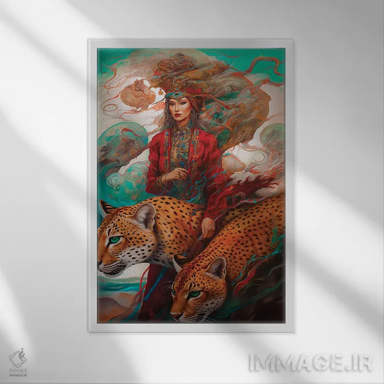 براساس پالت ترکیبی اثر، قاب تیک گرم (چوبی) پیشنهاد اول است و مشکی مات (فریم متوسط) مکمل. برای سفارشهای پروژهای با ابعاد و قابهای اختصاصی با ایماژ در تماس باشید.