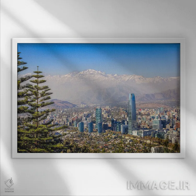 تابلو آسمان‌نمای سانتیاگو هنگام روز اثر الکس جی پرز - نمای قاب‌دار سفید