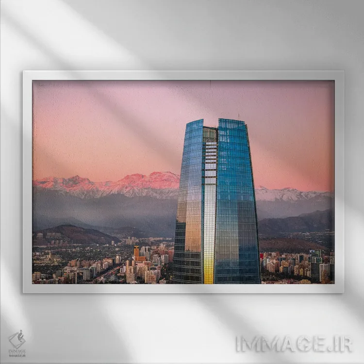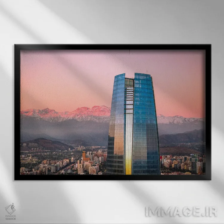 تابلو برج آسماننمای سانتیاگو هنگام غروب اثر الکس جی پرز