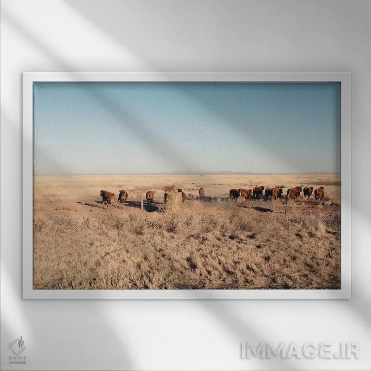 تابلو فرار (حرکت گله‌ای، یورش حیوانات) اثر آن هادک - نمای قاب‌دار سفید
