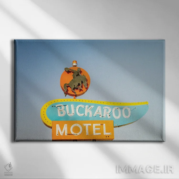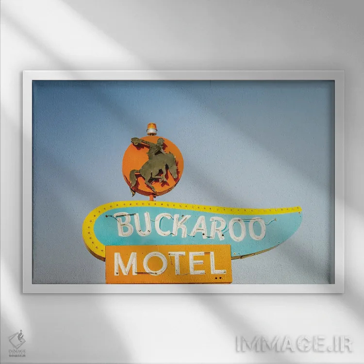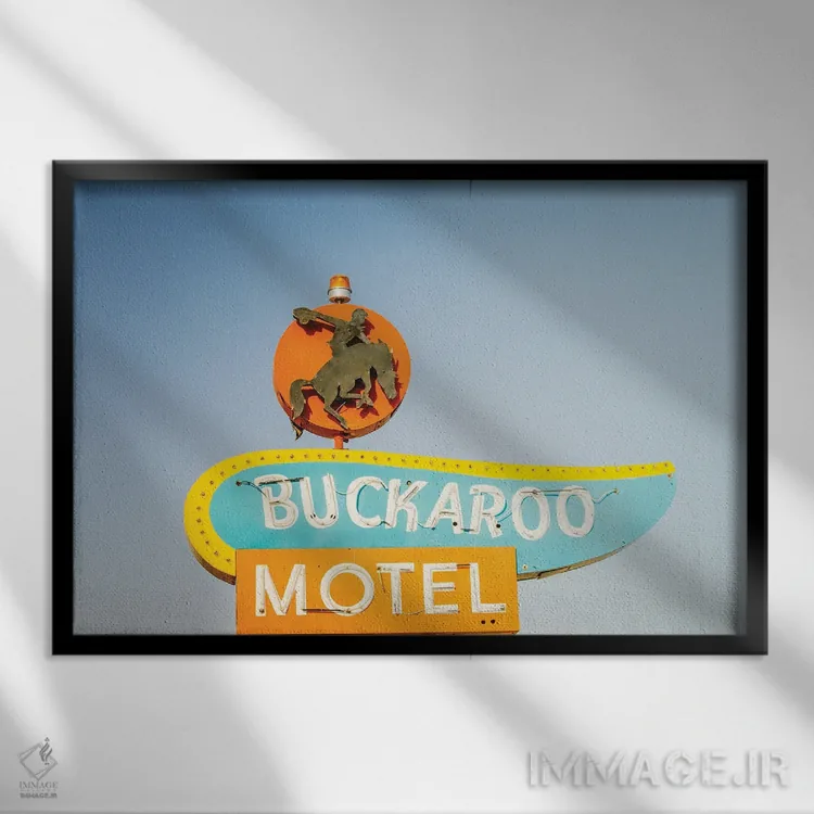 تابلو تابلو قدیمی متل باکارو در جاده ۶۶ (اثر هنری) اثر آن هادک - نمای روبه‌رو روی دیوار