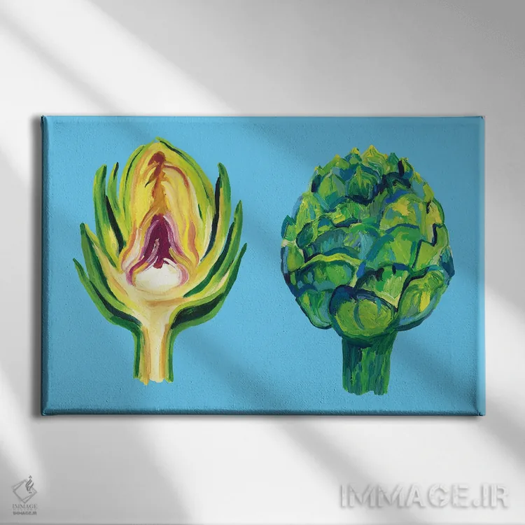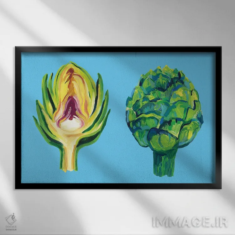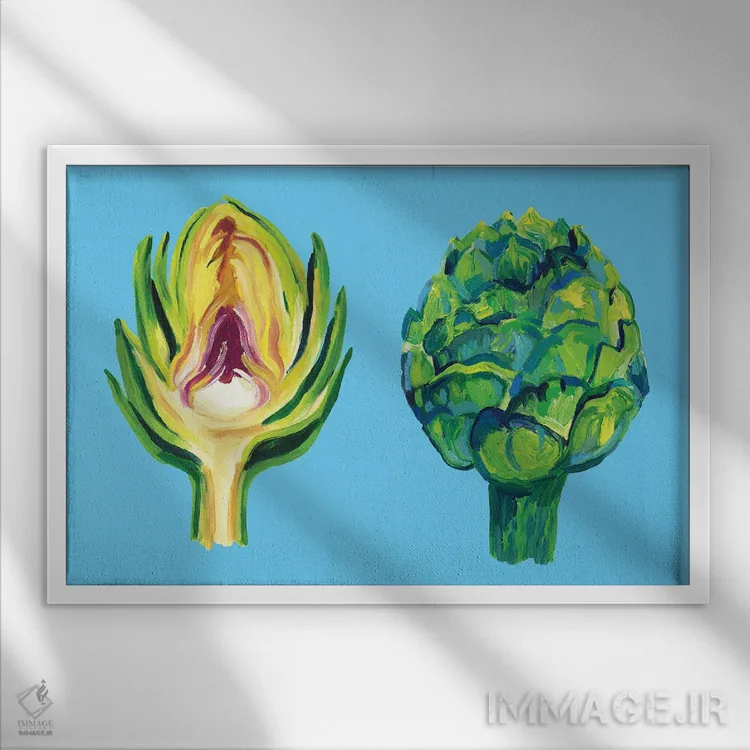 این تابلو با عنوان «کنگر فرنگی روی زمینهٔ آبی» اثرِ «آلیس استراکر»، حسِ گرم و صمیمی به فضا میدهد.