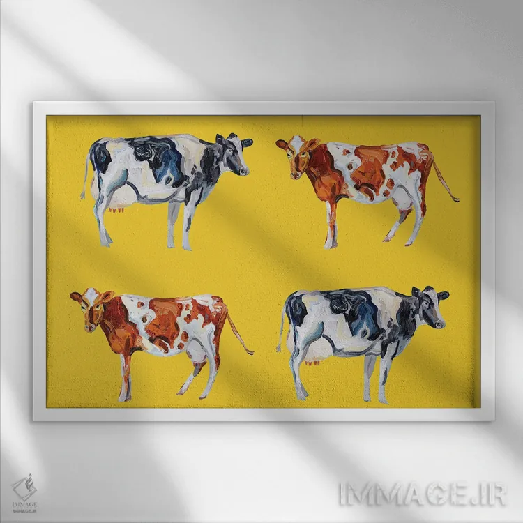 این اثر با عنوان «هنر گاو روی زرد» اثرِ «آلیس استراکر» مثل یک امضای بامزه اما متین عمل میکند؛ برای اتاق بازی یا گوشهٔ مطالعه انتخابی خوشسلیقه است. هر بار نگاهش میکنید، یک جزئیات تازه به چشم میآید.
