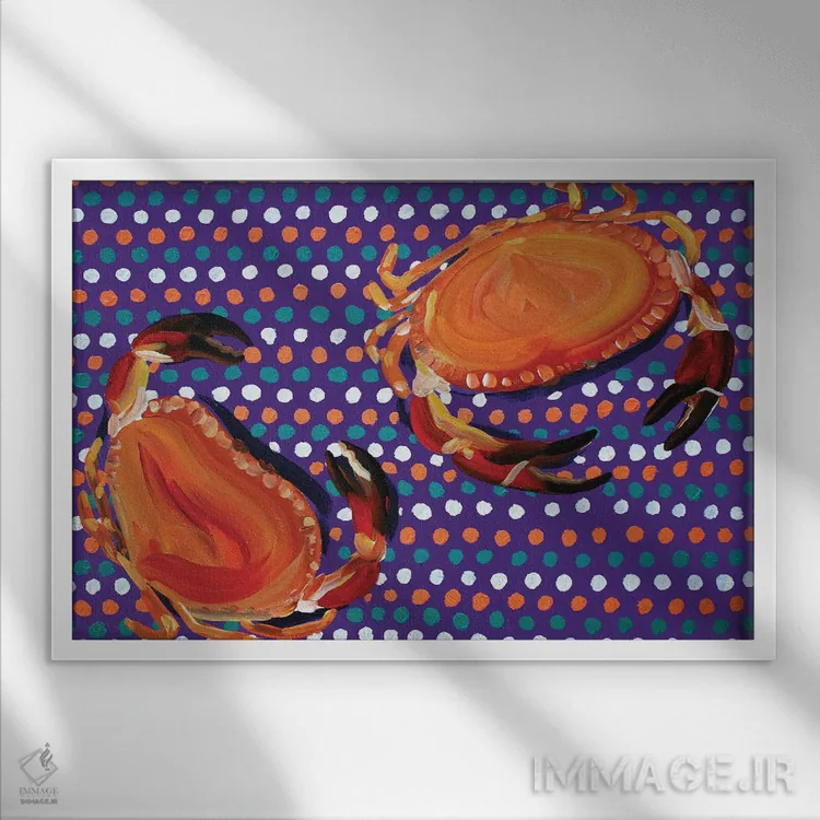تابلو خرچنگ‌ها روی بنفش خال‌خال اثر آلیس استراکر - نمای پرسپکتیو محصول