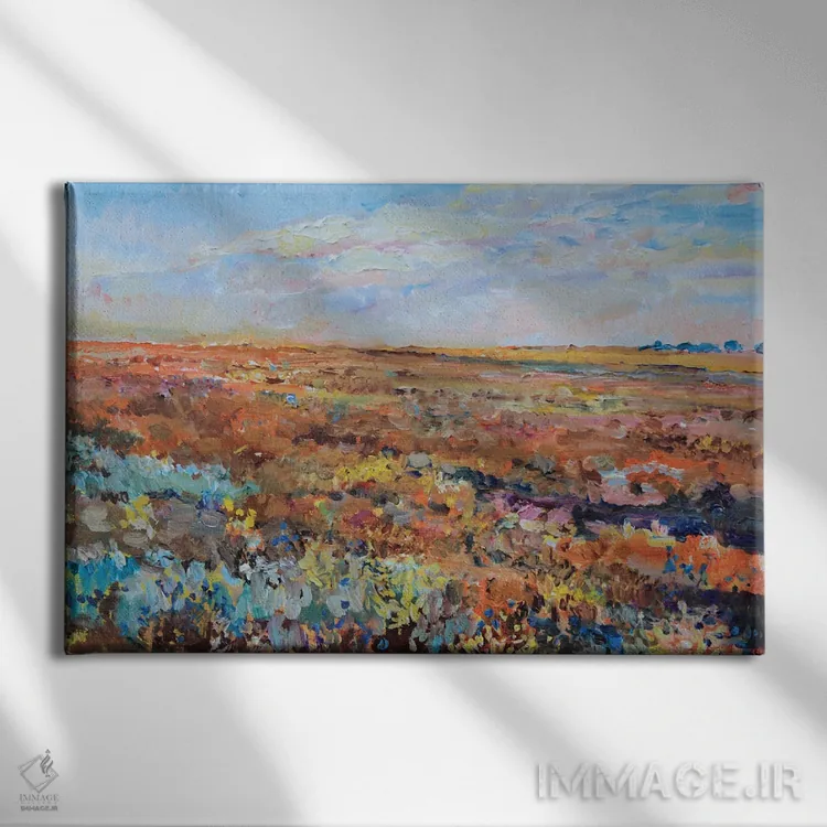 براساس پالت ترکیبی اثر، قاب تیک گرم (چوبی) پیشنهاد اول است و مشکی مات (فریم متوسط) مکمل. برای سفارشهای پروژهای با ابعاد و قابهای اختصاصی با ایماژ در تماس باشید.