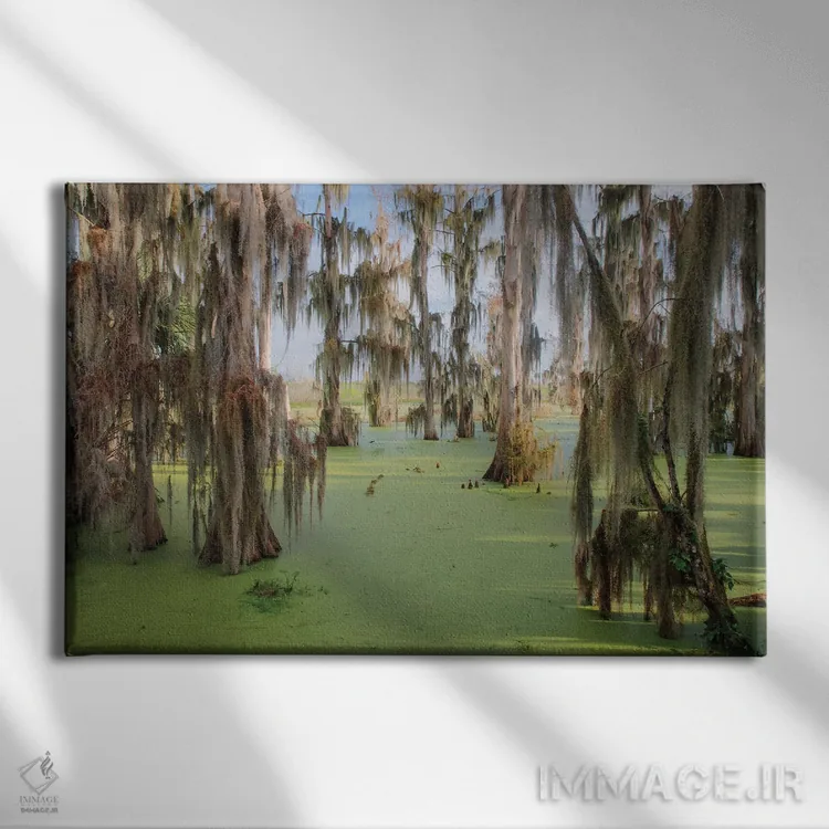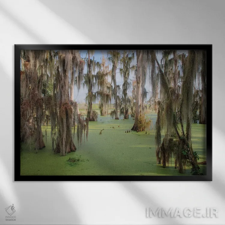 تابلو درختان سرو پوشیده از خزه اسپانیایی، مزرعه سیرکل بی، شهرستان پولک، فلوریدا اثر آدام جونز - نمای روبه‌رو روی دیوار