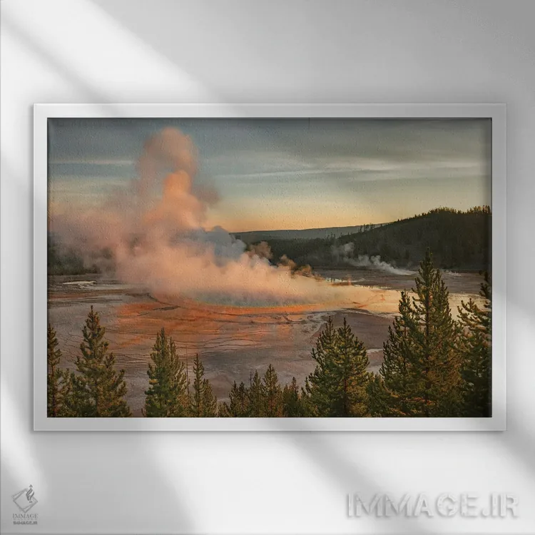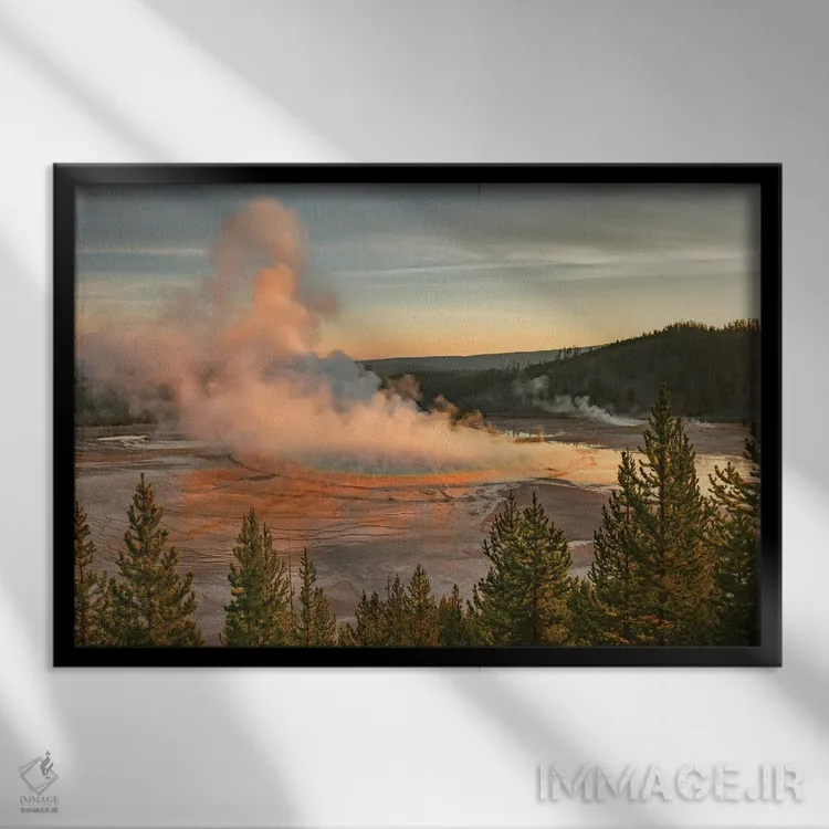 اگر اهل «کم اما درست» هستید، «نمای طلوع مرتفع از چشمه گرند پریسماتیک و بستر باکتریایی رنگارنگ، پارک ملی یلوستون، وایومینگ» اثرِ «آدام جونز» دیوار را از تزئین به «حضور» تبدیل میکند؛ برای دکورهای کلاسیک با چوب و پارچه پیشنهاد میشود. به فضا حس «گالری خانگی» میدهد، بدون اینکه اغراق کند.