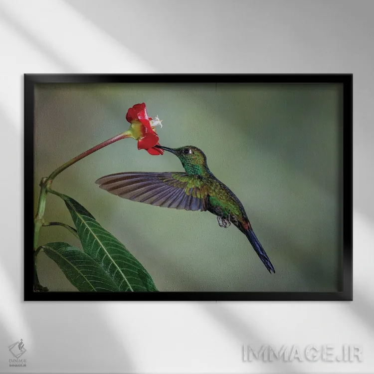 برای فضایی که میخواهید مرتبتر و حرفهایتر دیده شود، «مرغ مگسخوار تاجسبز درخشان، کاستاریکا» اثرِ «آدام جونز» به فضا، روایت ملایم و قابل لمس میدهد؛ برای فضاهایی با نور طبیعی پیشنهاد میشود. با مبلمان خنثی، تضاد دلنشینی میسازد.