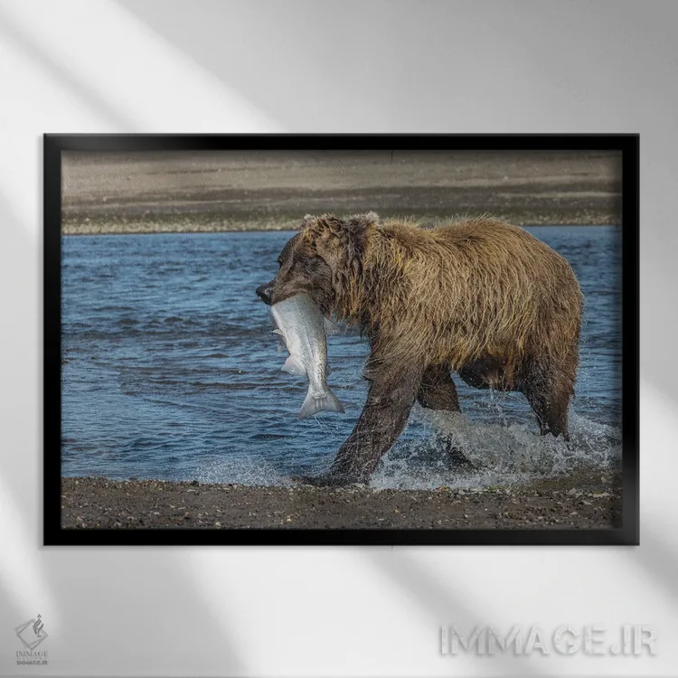 این اثر با عنوان «خرس گریزلی با ماهی سالمون در دهان، سیلور سالمون کریک، پارک ملی و منطقهٔ حفاظتشده لیک کلارک، آلاسکا» اثرِ «آدام جونز» گرما و شخصیت به فضا اضافه میکند؛ برای هدیهدادن به دوستداران حیوانات انتخابی خوشسلیقه است. هم فضا را گرم میکند، هم شلوغش نمیکند.
