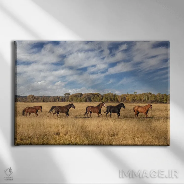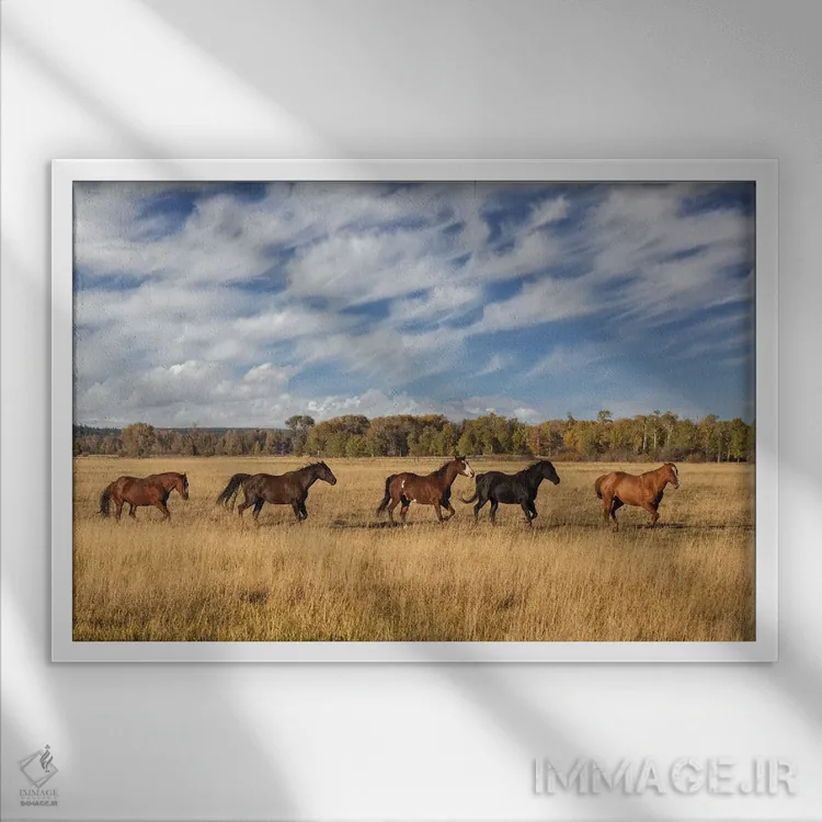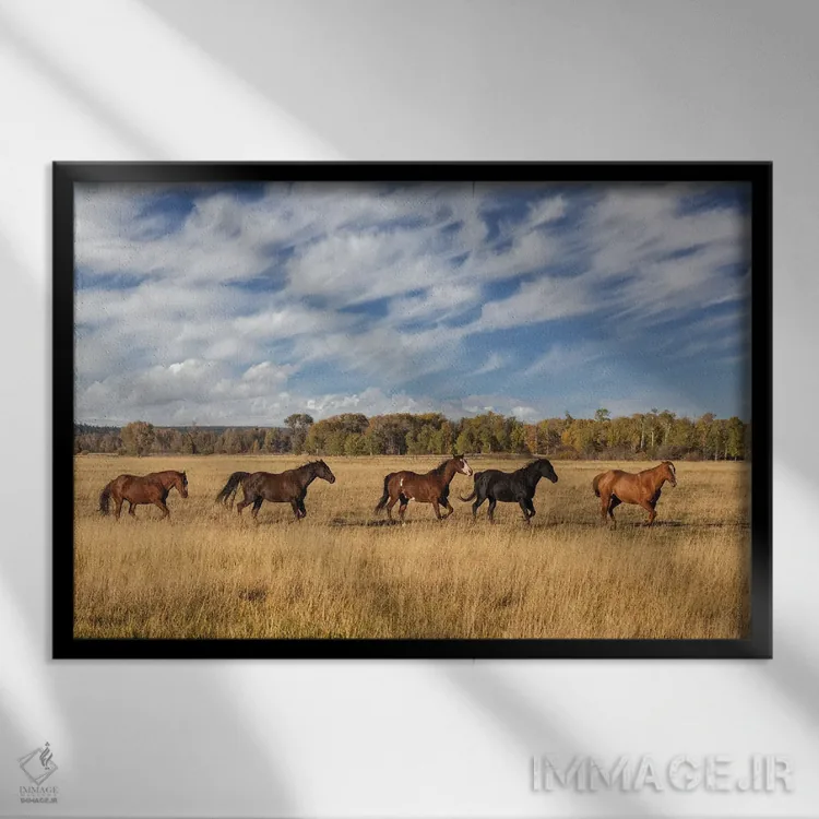 وقتی چیدمان را با دقت میچینید، «اسبها در فضای بیرونی، پارک ملی گرند تتون، وایومینگ» اثرِ «آدام جونز» در کنار مبلمان، خوشنشین و هماهنگ مینشیند؛ برای فضاهایی که میخواهید آرام اما جدی دیده شوند پیشنهاد میشود. حضورش روی دیوار «مرتب» است؛ نه پر سر و صدا، نه بیاثر.