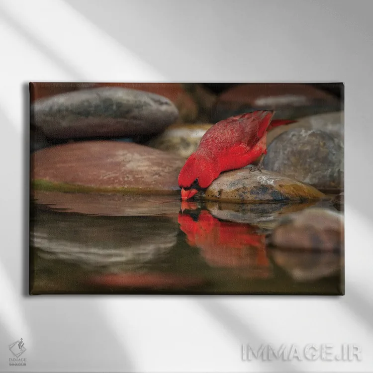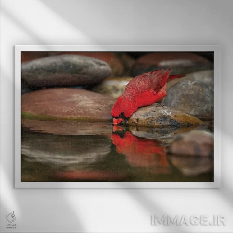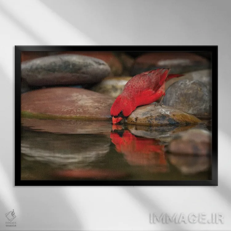 تابلو کارباورال شمالی نر در حال نوشیدن از استخر کوچک در بیابان، درهٔ ریو گرانده، تگزاس اثر آدام جونز