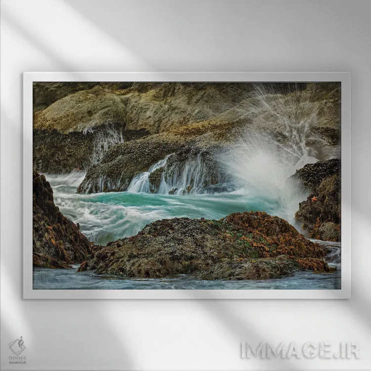 در این اثر، «موجها در حال برخورد با صخرهها، ساحل بندون، اورگن» اثرِ «آدام جونز» فضا را روشنتر و زندهتر نشان میدهد؛ برای کنار کتابخانه یا میز کار پیشنهاد میشود. این تابلو میتواند شروعِ خوبی برای یک دیوار گالری باشد.