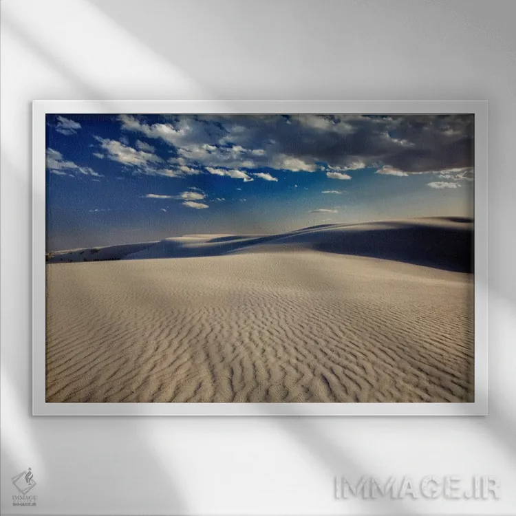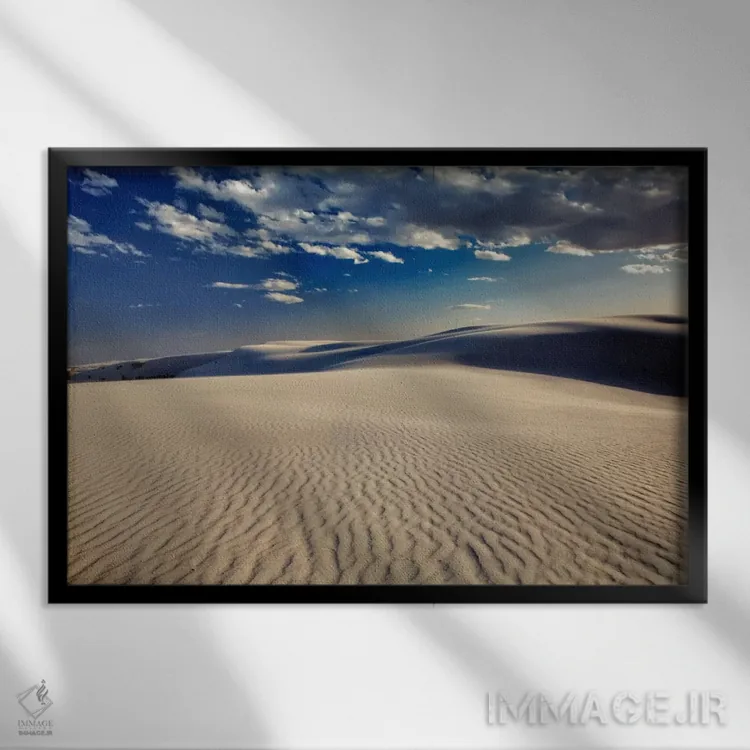 این تابلو با عنوان «تپههای شنی موجدار، یادمان ملی شنهای سفید، حوضه تولاروسا، نیومکزیکو، آمریکا» اثرِ «آدام جونز» روی دیوار، تمیز و دقیق دیده میشود؛ برای راهروها و ورودیهای مینیمال پیشنهاد میشود. برای ترکیب با چوب، سنگ یا فلز، انتخابی دقیق است.