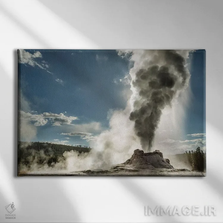 تابلو فوران گایزر کسل، حوضه آبگرم بالایی، پارک ملی یلواستون، وایومینگ اثر آدام جونز - نمای روبه‌رو روی دیوار