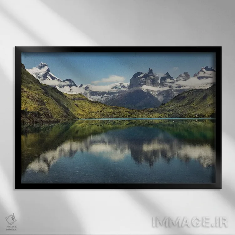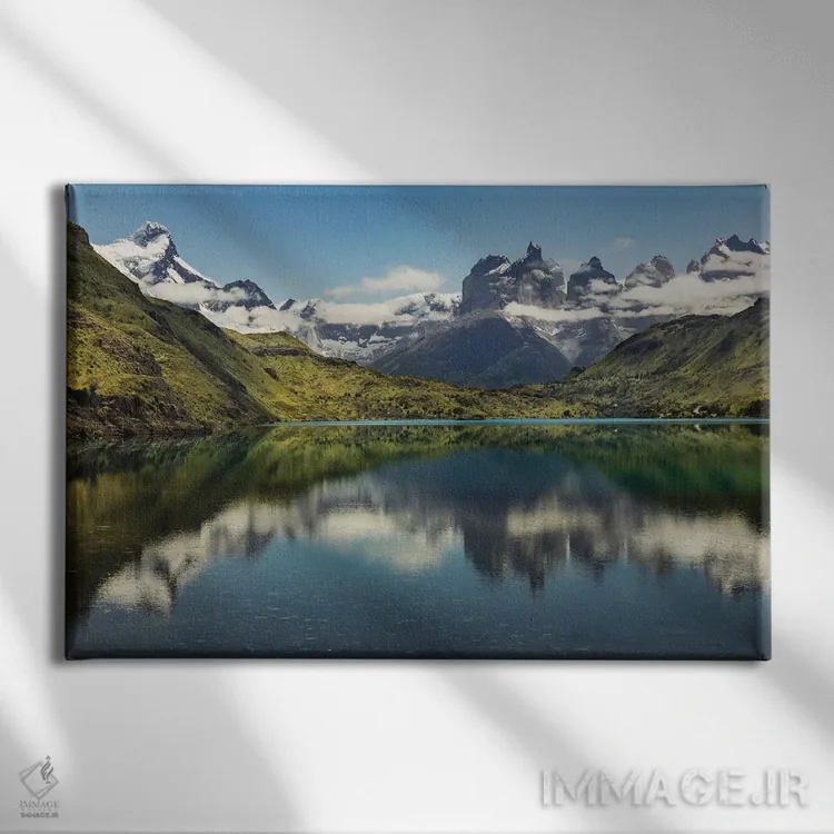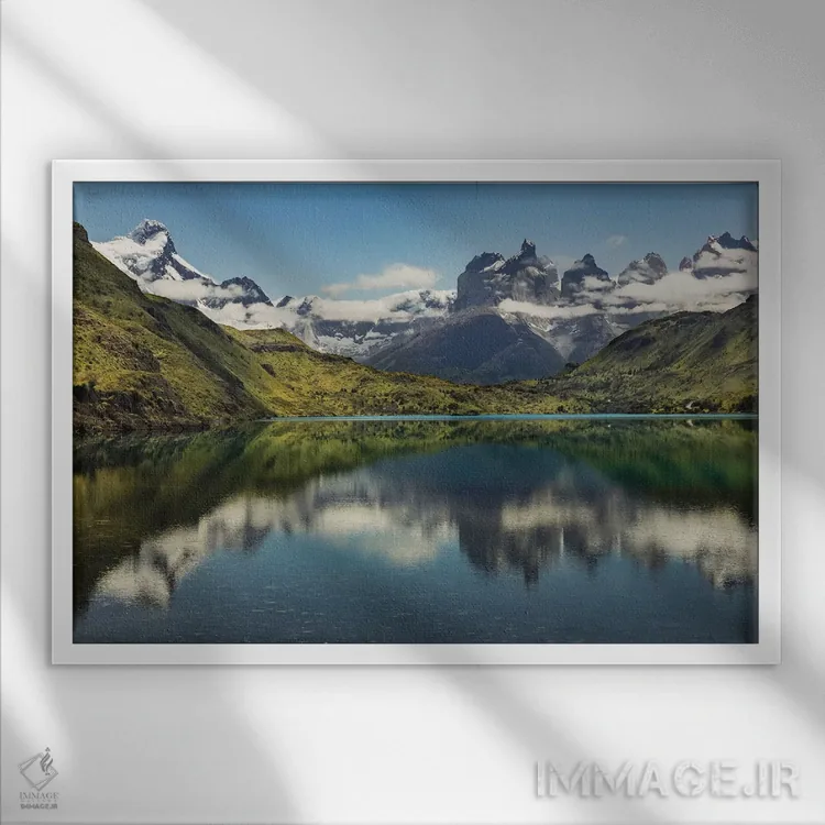 تابلو انعکاس کورنوس دل پائینه بر دریاچه، پارک ملی تورس دل پائینه، شیلی، پاتاگونیا اثر آدام جونز