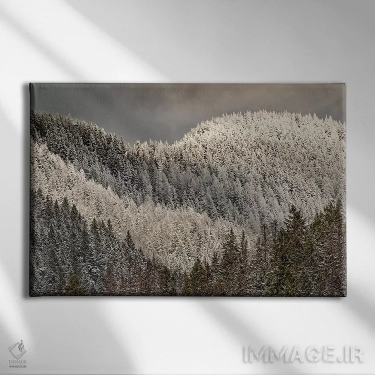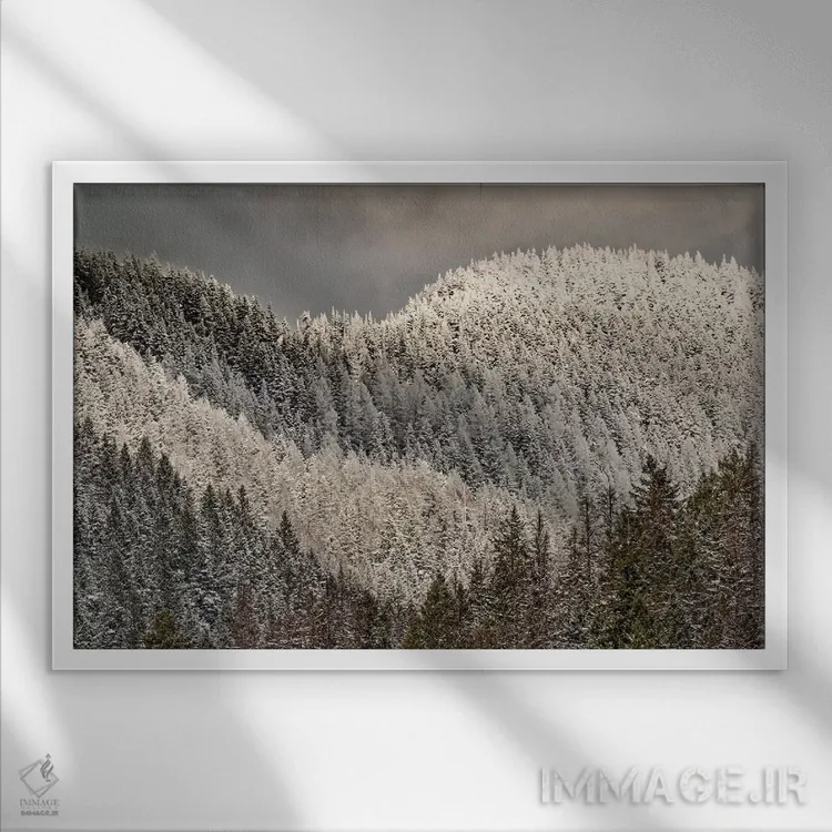 تابلو دکوراتیو درختان پوشیده از برف روی کوه اثر آدام جونز