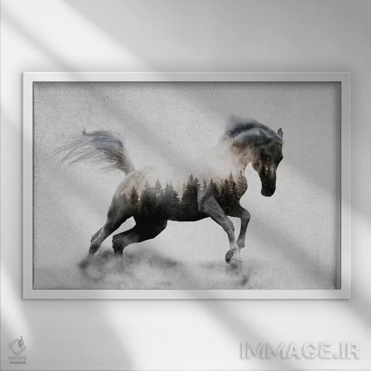 تابلو اسب I اثر آندریاس لیه - نمای قاب‌دار سفید