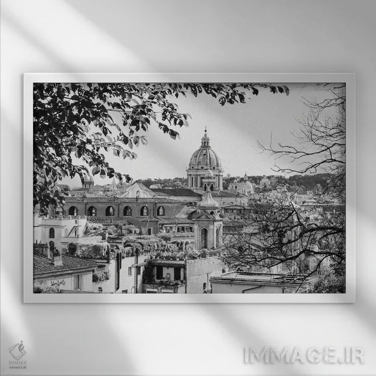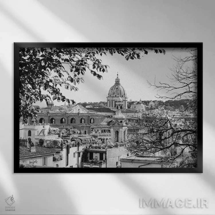 تابلو ایتالیا، رم. گنبد سن پیتر از خیابان ویاله دلا ترینیتا دی مونتی اثر آلیسون جونز - نمای قاب‌دار مشکی