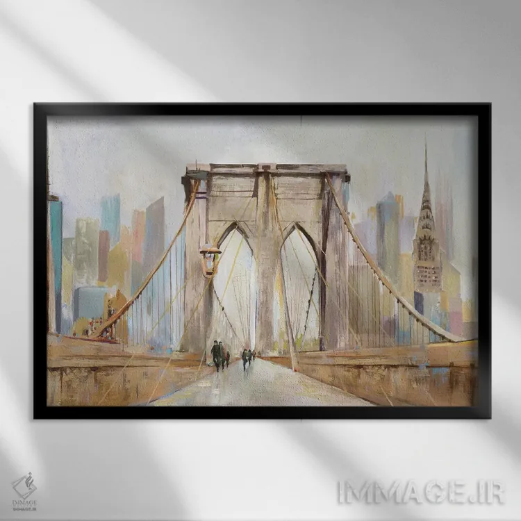 «پیادهراه پل بروکلین (نیویورک)» اثرِ «آلیسون پیرس» میتواند حس نظم و استحکام به فضا بدهد؛ برای لابی و فضاهای رسمی پیشنهاد شود. برای دیوار گالری هم گزینهٔ خوبیست.