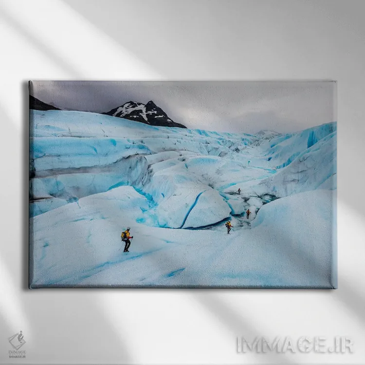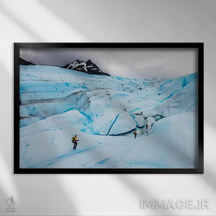 «گروهی از کوهنوردان در حال عبور از یخچال عظیم تِیندال در توره دل پاینه، پاتاگونیا، شیلی» اثرِ «الکس بیوس» انتخابیست برای زمانی که تضادهای رنگی را خوشقوارهتر میکند؛ برای کافهها و فضاهای عمومی کوچک انتخابی عالی است. اگر دنبال زیباییِ بیادعا هستید، این اثر درست مینشیند.