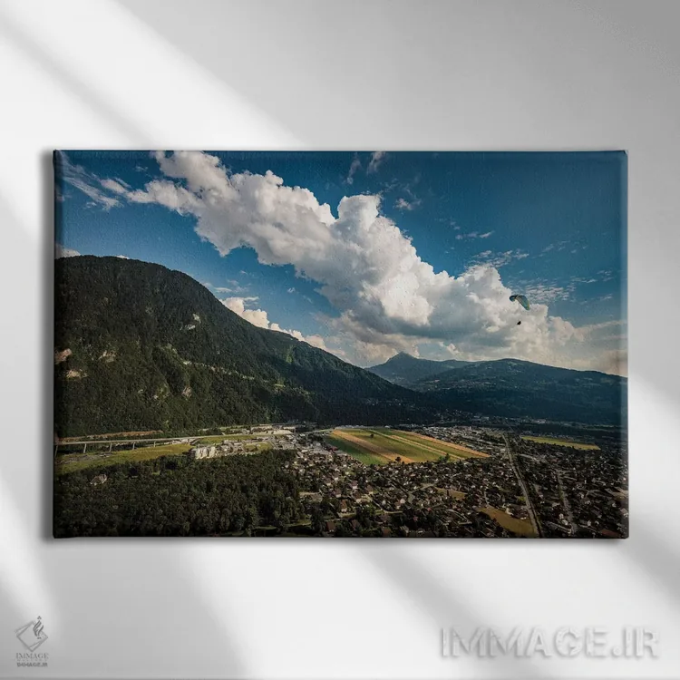 تابلو دکوراتیو یک پاراگلایدر بر فراز دره پاسی، اوت سووآ، فرانسه اثر الکس بیوس