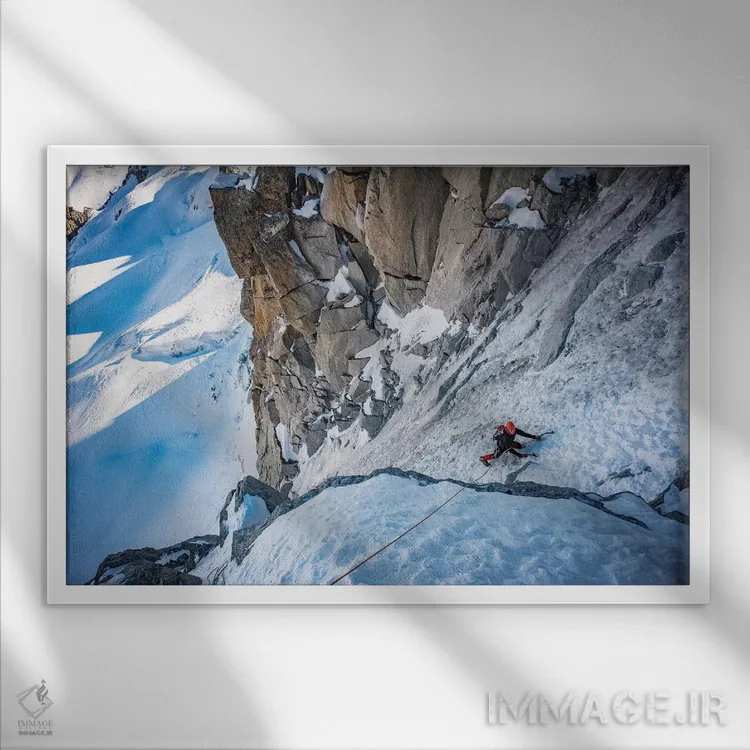 برای خانههایی که به زیباییِ آرام علاقه دارند، «کوهنوردی بر دیواره شمالی تور رونده، شامونی، فرانسه» اثرِ «الکس بیوس» تضادهای رنگی را خوشقوارهتر میکند؛ برای راهروها و ورودیهای مینیمال پیشنهاد میشود. در کنار گیاهان آپارتمانی هم جلوهٔ لطیفی پیدا میکند.