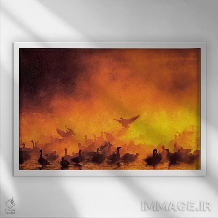 در «دسته غازهای برفی در مه، پناهگاه ملی حیات وحش بوسکه دل آپاچی، شهرستان سوکورو، نیومکزیکو، آمریکا» اثرِ «آرتور موریس»، حضور حیوانات مثل یک امضای بامزه اما متین عمل میکند؛ برای خانههایی با چوب و پارچههای گرم انتخابی خوشسلیقه است. حسش صمیمی است، اما کیفیتش جدی و خوشپرداخت.