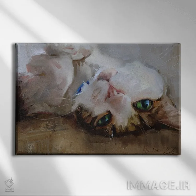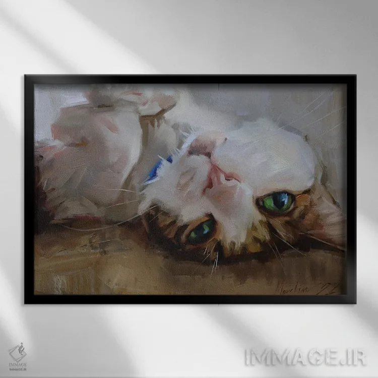 «پرترهٔ گربهای که به پشت خوابیده» اثرِ «الکس مووچون» یک گزینهی عالی برای اتاق کودک یا فضاهای خانوادگی است.