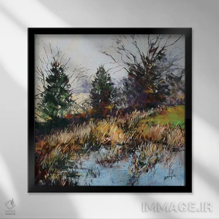 تابلو مِه در حال پراکنده شدن اثر اندرو مودی - نمای قاب‌دار مشکی