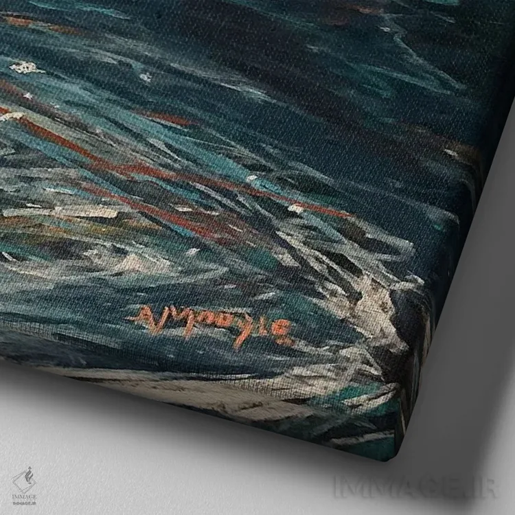 تابلو مرغ ماهی‌خوار (پرنده) اثر اندرو مودی - نمای نزدیک بافت بوم