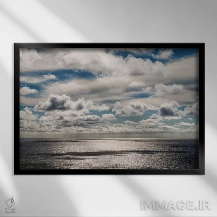 براساس پالت سرد اثر، قاب سفید مات (فریم باریک) پیشنهاد اول است و نقرهای برسخورده (متالیک) مکمل. برای سفارشهای پروژهای با ابعاد و قابهای اختصاصی با ایماژ در تماس باشید.