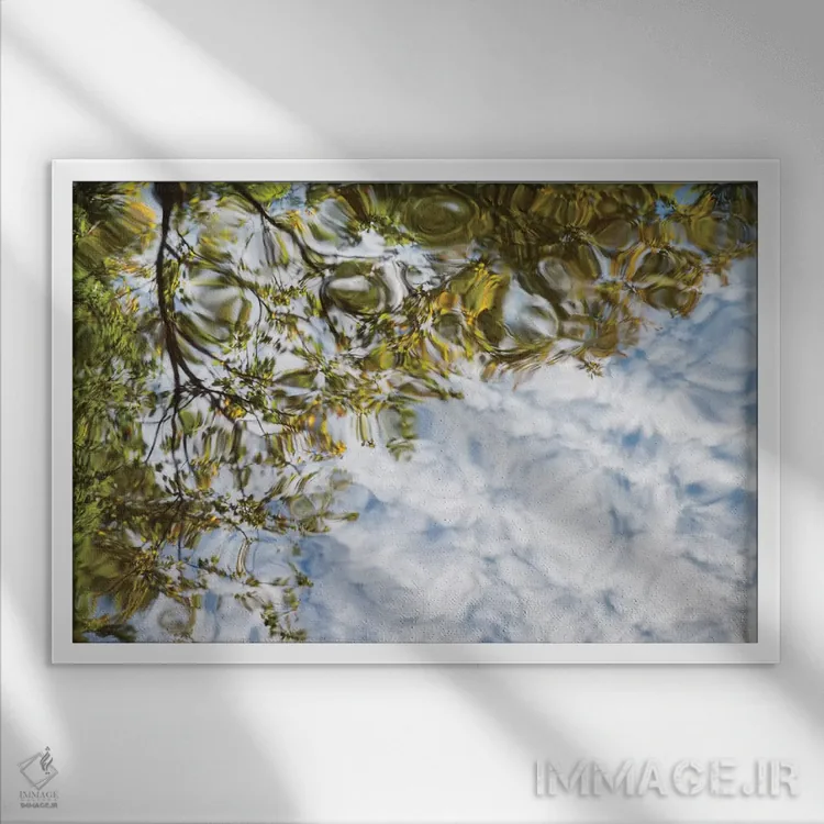 تابلو آمریکا، نیوهمپشایر، کوه‌های سفید، انعکاس انتزاعی اثر آن کالینز - نمای قاب‌دار سفید
