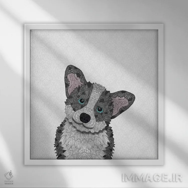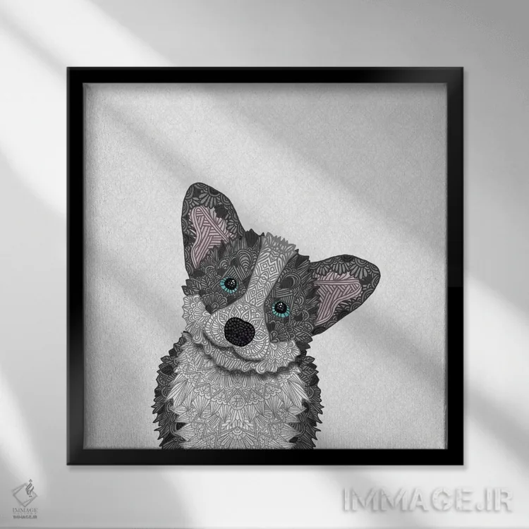 تابلو کورگی آبی (سگ) اثر آنجلیکا پارکر - نمای قاب‌دار مشکی