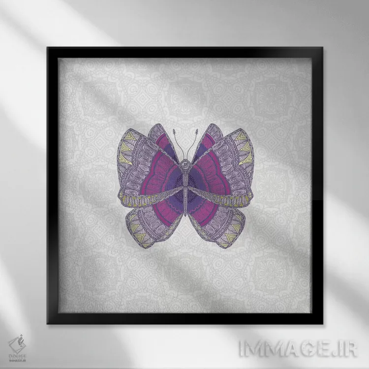 تابلو پروانهٔ بنفش کبود اثر آنجلیکا پارکر - نمای قاب‌دار مشکی