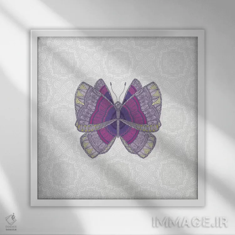 تابلو پروانهٔ بنفش کبود اثر آنجلیکا پارکر - نمای قاب‌دار سفید