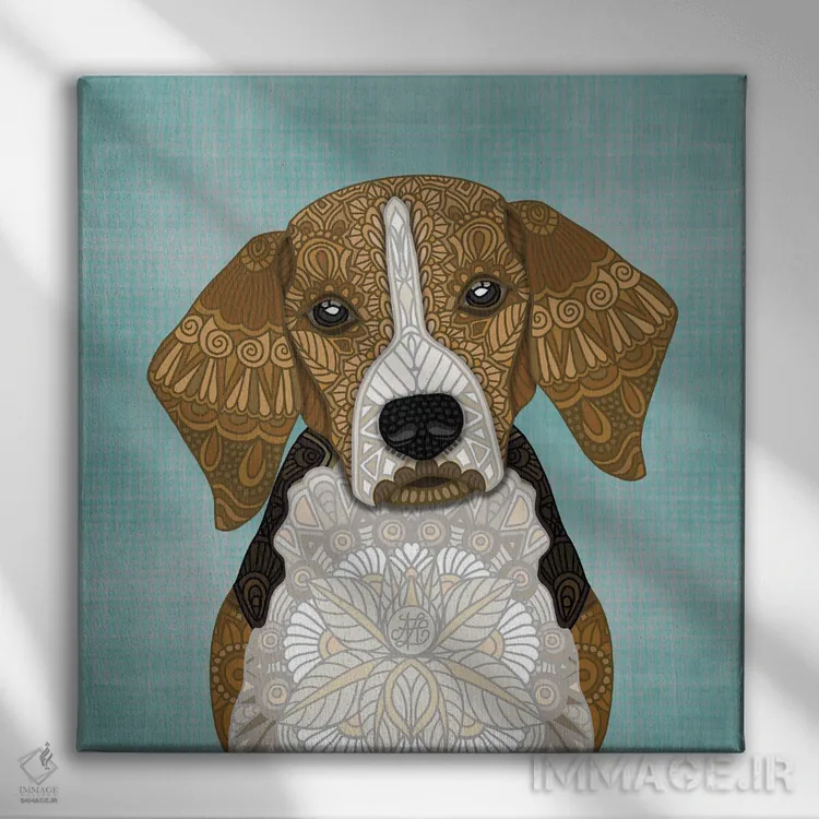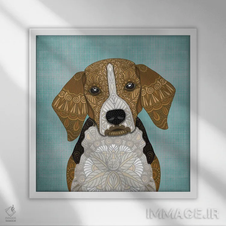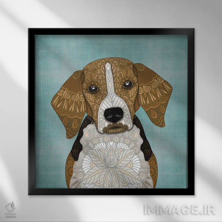 «بیگل (طرح مربع)» اثرِ «آنجلیکا پارکر» از آن کارهاییست که مثل یک امضای بامزه اما متین عمل میکند؛ برای اتاق بازی یا گوشهٔ مطالعه انتخاب خوبیست. با قاب چوبی یا مشکی، حس مرتبتری پیدا میکند.