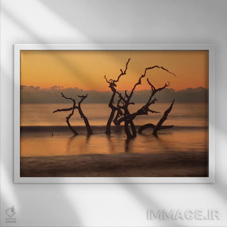 گاهی یک اثر کافیست تا فضا جمعوجور شود؛ «Georgia. Jekyll Island، Driftwood Beach at sunrise.، آمریکا، جورجیا. جزیره جکیل، ساحل دریفتوود در سپیدهدم» اثرِ «جوآن ولز» حس گالریوار را بیسروصدا وارد خانه میکند؛ برای دیوار بالای کنسول یا شومینه پیشنهاد میشود. به فضا حس «گالری خانگی» میدهد، بدون اینکه اغراق کند.