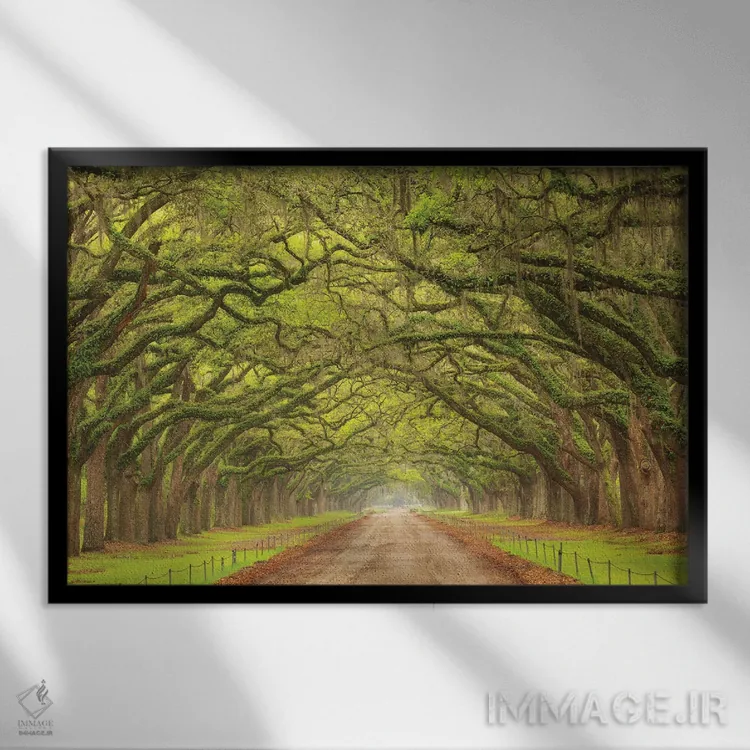 برای دیواری که دوست دارید «حرف داشته باشد»، «Georgia، Savannah. Canopy Of Oaks Along Drive At Wormsloe Plantation.، آمریکا، جورجیا، ساوانا. سایهبان درختان بلوط در کنار جاده ورمزلو» اثرِ «جوآن ولز» فضا را روشنتر و زندهتر نشان میدهد؛ برای فضاهایی که میخواهید مرکز توجه داشته باشند پیشنهاد میشود. به فضا حس «گالری خانگی» میدهد، بدون اینکه اغراق کند.